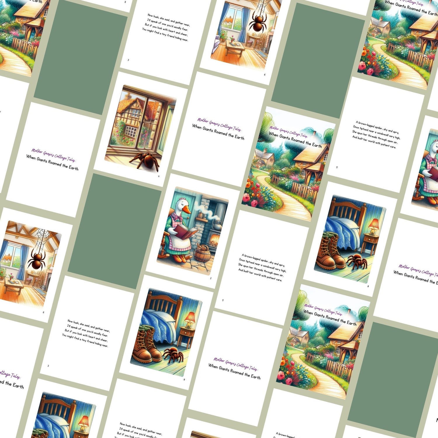 Step into the quietly wondrous world of Mother Goose’s Cottage Tales: When Giants Roamed the Earth — a beautifully illustrated children’s book that invites little readers to see life through the eyes of a tiny brown spider. With warmth, rhythm, and whimsical charm, this story gently teaches kids to notice what’s small, honor what’s often overlooked, and care deeply for the world they share.